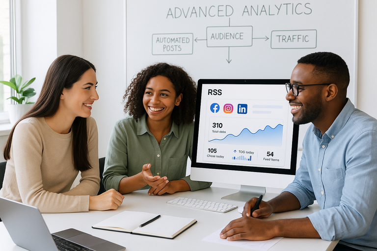 Economize tempo e nunca perca uma atualização: compartilhe instantaneamente os artigos, podcasts ou vídeos mais recentes de qualquer fonte RSS para Facebook, Instagram, X, Tiktok e muito mais-mãos livres e sempre dentro do cronograma.